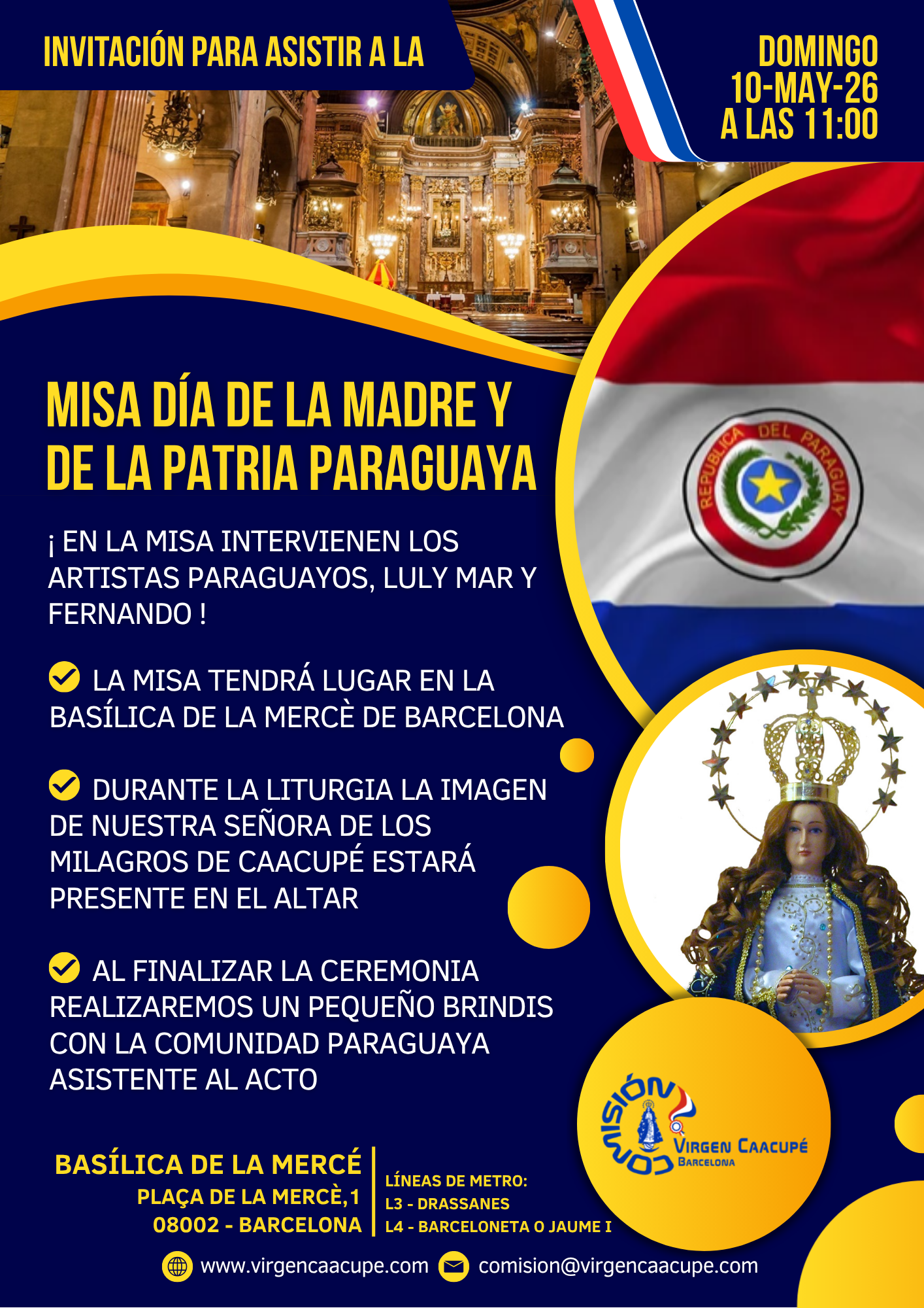 La imagen de la Virgen de Caacupé junto con sus celebraciones religiosas y su devoción llegó a la ciudad en 2007 de la mano de la agrupación religiosa paraguaya. A partir de entonces, la colectividad incorporó la práctica religiosa devocional como uno de los actos más importantes de la agrupación en la actividad social barcelonesa.